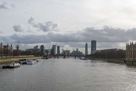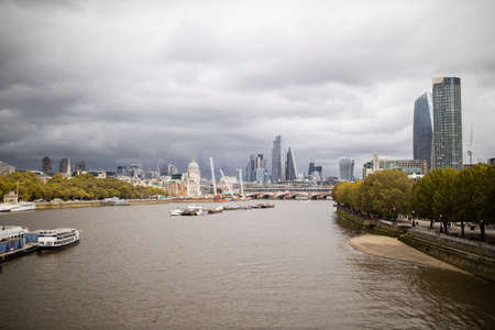 London, UK - February 23, 2021: City of London financial district view from the Embankment. View include river Thames, St, Pauls cathedral