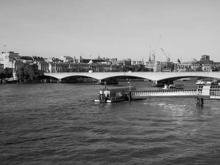 LONDON, UK - JUNE 09, 2015: Panoramic view of Thames River in black and white
