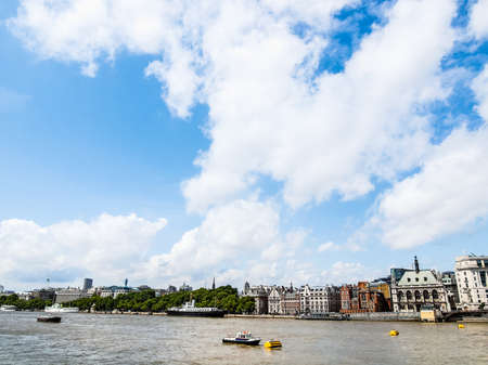 LONDON, UK - JUNE 11, 2015: Panoramic view of Thames River vintage