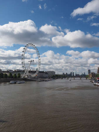 LONDON, UK - CIRCA JUNE 2017: The London Eye ferris wheel on the South Bank of River Thames aka Millennium Wheel