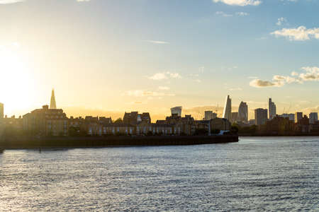 LONDON, UK - AUGUST 21, 2015: London waterfront near Blackfriars in London at sunset