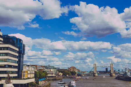 LONDON, UNITED KINGDOM - August 3rd, 2014: view of the Thames and Tower Bridge in London city centre