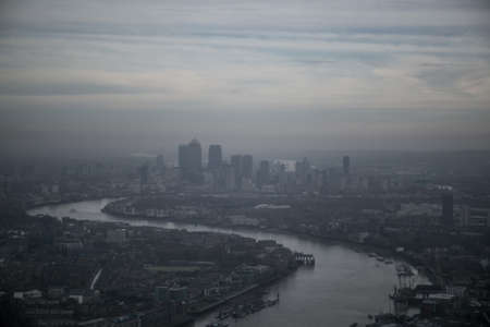View over the Thames and city of London from the Sky Garden, United Kingdom.