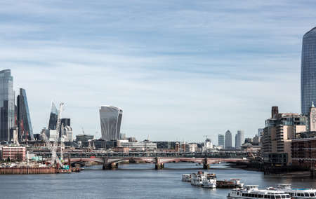London - October 2019: Thames, Southwark Bridge, City of London and The Shard