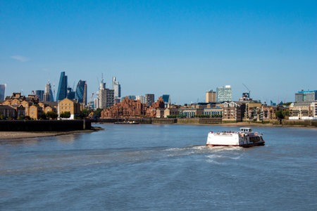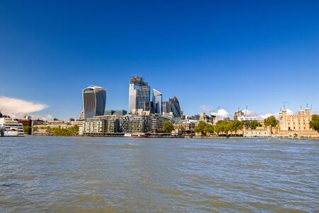 London, Great Britain - August 1, 2015: Cityscape at the Thames with the modern skyline of London.