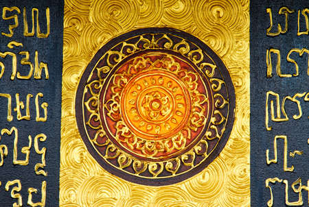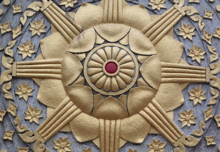 A beautiful carving is the wheel of law which symbolize Buddhism.