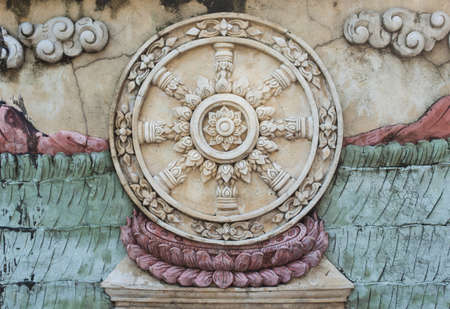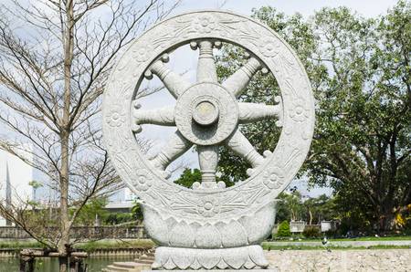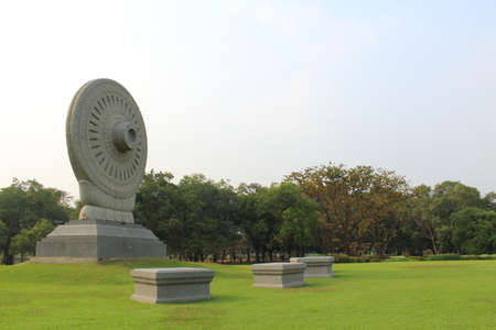 Wheel of Dhamma or Wheel of Law in Ayutthaya, Thailand.