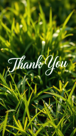 Green grass background with a handwritten thank you message, expressing gratitude in a natural setting