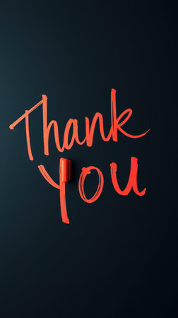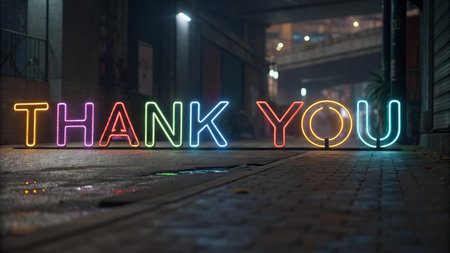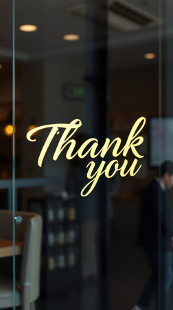 Brightly lit thank you message on dark background creates warm and inviting atmosphere in modern space