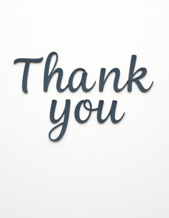Elegant thank you message on a simple white background with graceful script font
