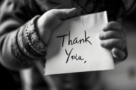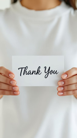 Holding a thank you card with gratitude and appreciation in a simple setting