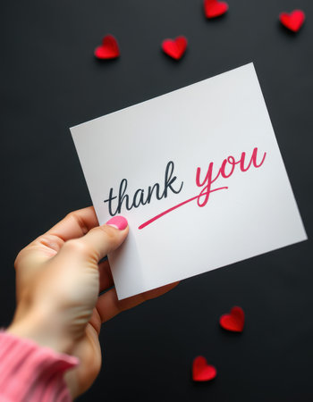 Expression of gratitude with a heartfelt 'thank you' inscription.
