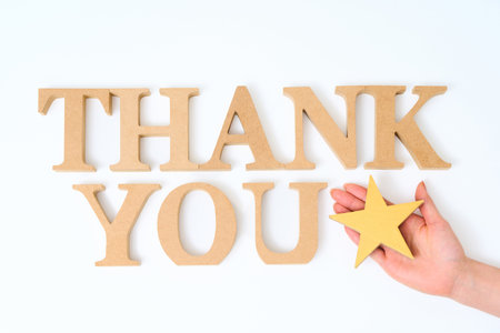 Colorful wooden tiles spell out thank you on a light background showcasing a creative expression of gratitude