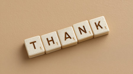 This image captures vintage scrabble tiles that spell Thank on a soft, neutral background. Perfect for themes of gratitude, minimalism, or charming decor elements.