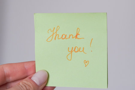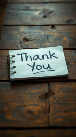 Note expressing gratitude placed on a wooden table with natural lighting
