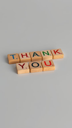 Colorful wooden tiles spell out thank you on a light background showcasing a creative expression of gratitude