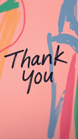 Bright thank you message with colorful strokes on a soft pink background creating a cheerful atmosphere for appreciation