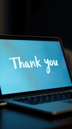 Text on a laptop screen expressing gratitude in a minimalistic and elegant manner, perfect for messages of appreciation