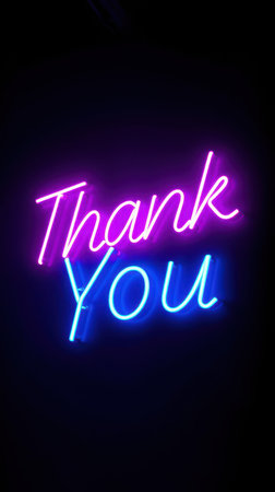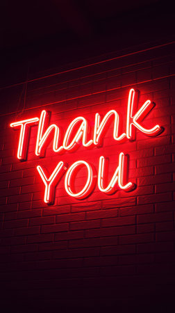 Brightly lit thank you message on dark background creates warm and inviting atmosphere in modern space