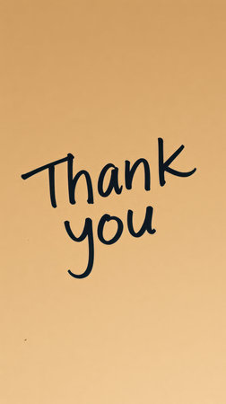 Thank you message written in elegant black script on a warm, neutral background destacando gratitude