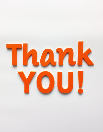 Creative display of a thank you message in bright orange on a light background