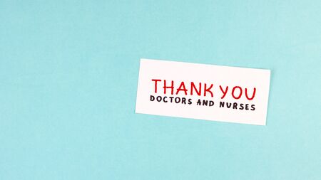 the inscription Thank you to doctors and nurses on a blue background. concept of gratitude to medical workers during the coronavirus pandemic