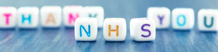 Blurred sign Thank You NHS on bokeh background