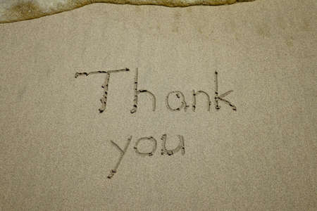 thank you, gratitude concept, beautiful card, word written on sand beach.