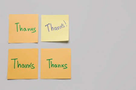 Sticky notes with word THANKS on gray background