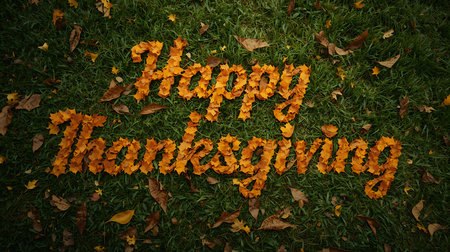 Vibrant Thanksgiving Greeting Spelled in Foliage