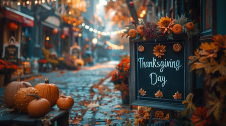 This stunning image captures the essence of Thanksgiving Day, featuring a beautifully roasted turkey adorned with vibrant fall decorations. Embrace the spirit of gratitude and family gatherings with this festive portrayal.