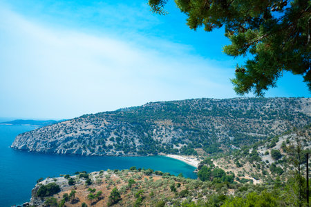 Beautiful view of the sea and mountains on the island of Rhodes, Greece