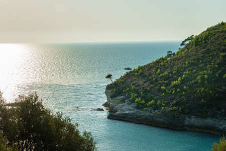 picturesque wilderness nature scenic view place of Mediterranean sea bay cozy lagoon with rocky coast line and vivid green tree foliage near water in summer clear weather day time