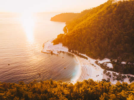 Colorful sea beach sunrise. Adrasan, Turkey