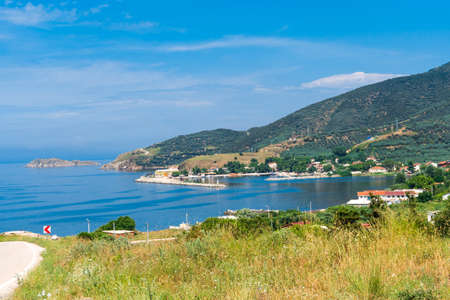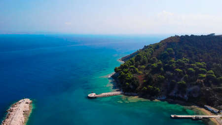 Scenic view of blue and green landscape. Kapıdag Peninsula Erdek, sea coast of Marmara Sea, Turkey.