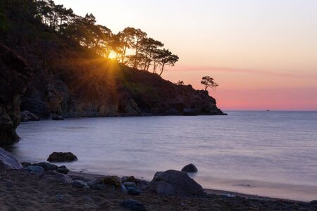 Sunrise above sea and pine tree with blue sea background Turkey