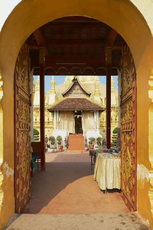 VIENTIANE, LAOS - APRIL 23, 2012: Entrance to the Pha That Luang stupa in Vientiane, Laos.