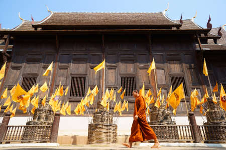 Buddhist monk walking in Phan-Tao temple, Chiangmai - Thailand