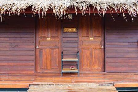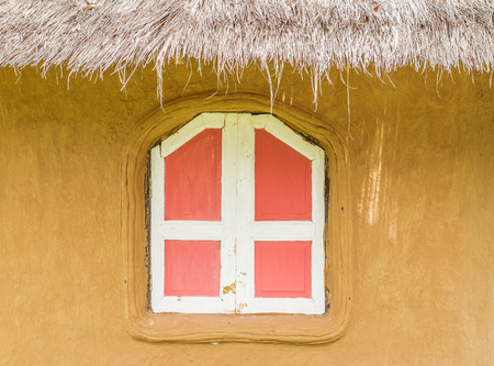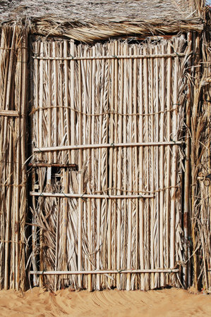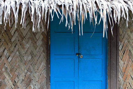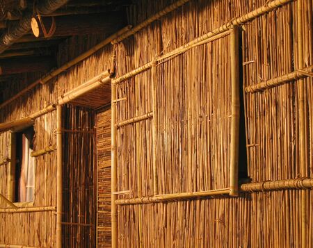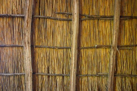 Full Frame Background of Front View of Traditional House with Bamboo Window and Thatched Wall