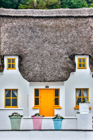 Thatched cottage in the popular tourist and fishing village of Dunmore East in County Waterford, Republic of Ireland.