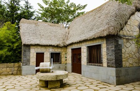 Typical Traditional country huts diffused until last century in Northern Italy region, Emilia Romagna. Made with 5 marsh plants: common reed, lesser bulrush, sedge, bulrush and sharp rush