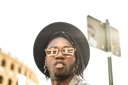 Portrait of a handsome African hipster man with modern eyewear. Lifestyle concept
