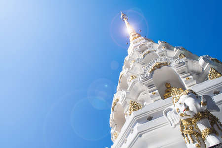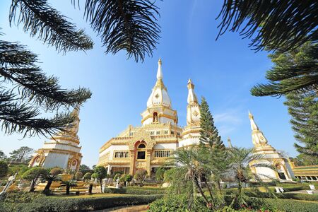 Ornament: architecture landscape of white and gold pagoda at wat Phrathat Nong Bua in Ubon Ratchathani province, Thailand
