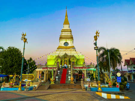 Wat Mahathat Temple during sunset at Nakhon Phanom Province, Thailand
