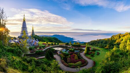 Landscape of two pagodas noppamethanedol noppapol phumsiri at inthanon mountain Chiang mai Thailand