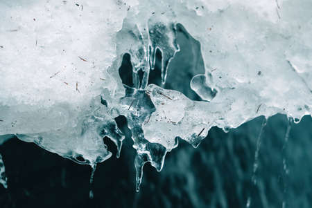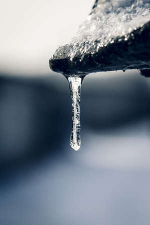 Melting icicle on a spring day, close-up.