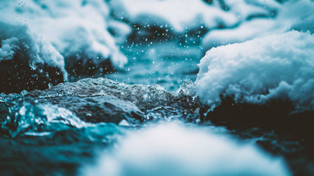 Amazing view of a frozen lake with partially thawed ice, showcasing intricate textures and captivating contrasts in shades of blue and white.