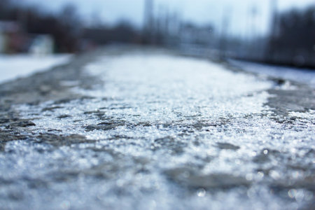 ice on the road in the city, shooting close up. High quality photo