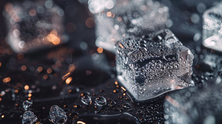 Macro shot of ice cubes on black background. Shallow depth of field