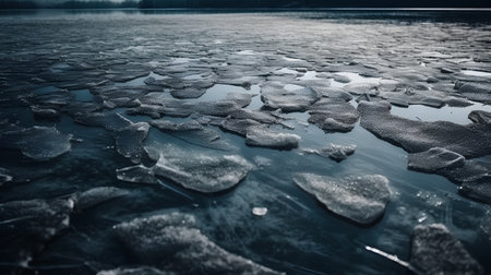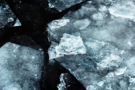Nice ice in dark water at cloudy winter day